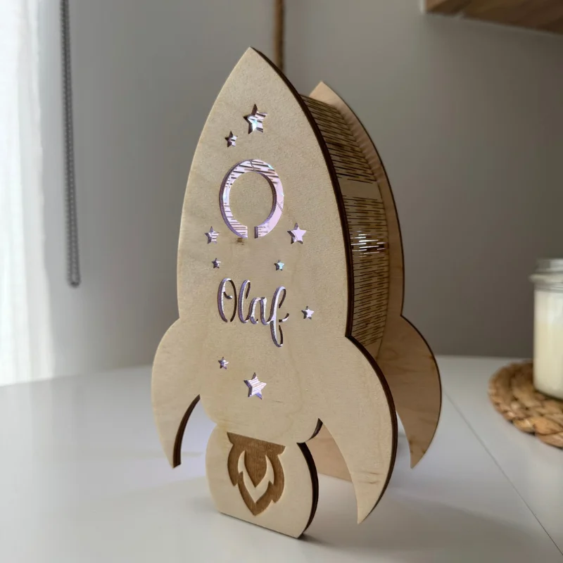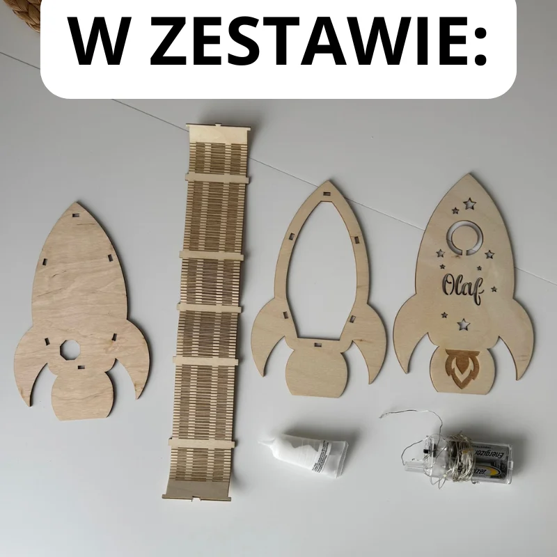 Lampki są wycinane z naturalnej sklejki, bezpiecznej dla dzieci i trwałej w użytkowaniu.